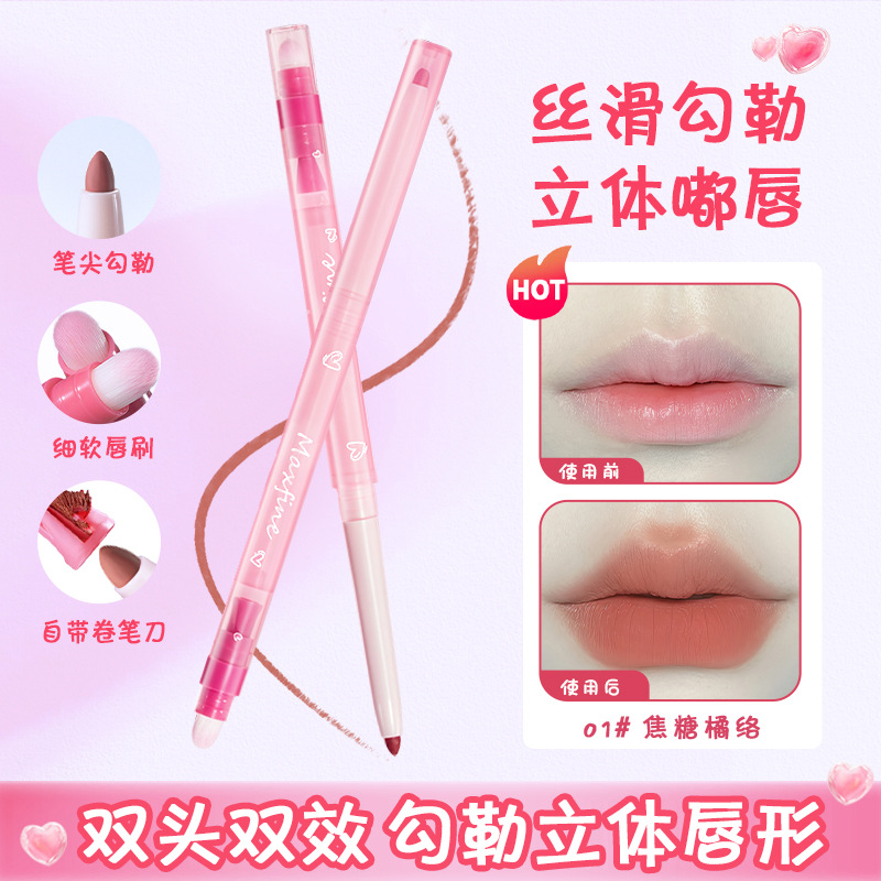 Maxfine マットベルベットチュッキーリップライナー輪郭唇ヌードカラー双頭ブライトニング口紅ペンリップペン卸売