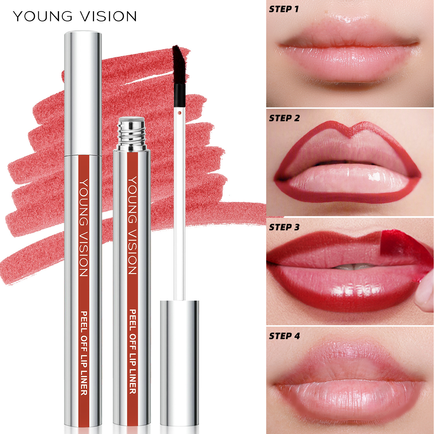 YOUNG VISION ピールオフ リップライナーは 3 色からお選びいただけます。カップに付着しにくく、色が残るリップグロスです。