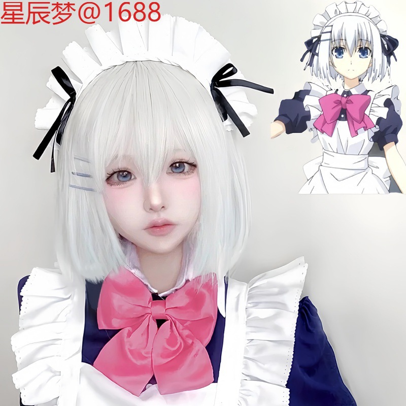 女性の凧 90% off 紙 cos ホワイトウィッグショートピュアホワイトボブヘッドナチュラルエア前髪フルヘッドギアユニバーサル
