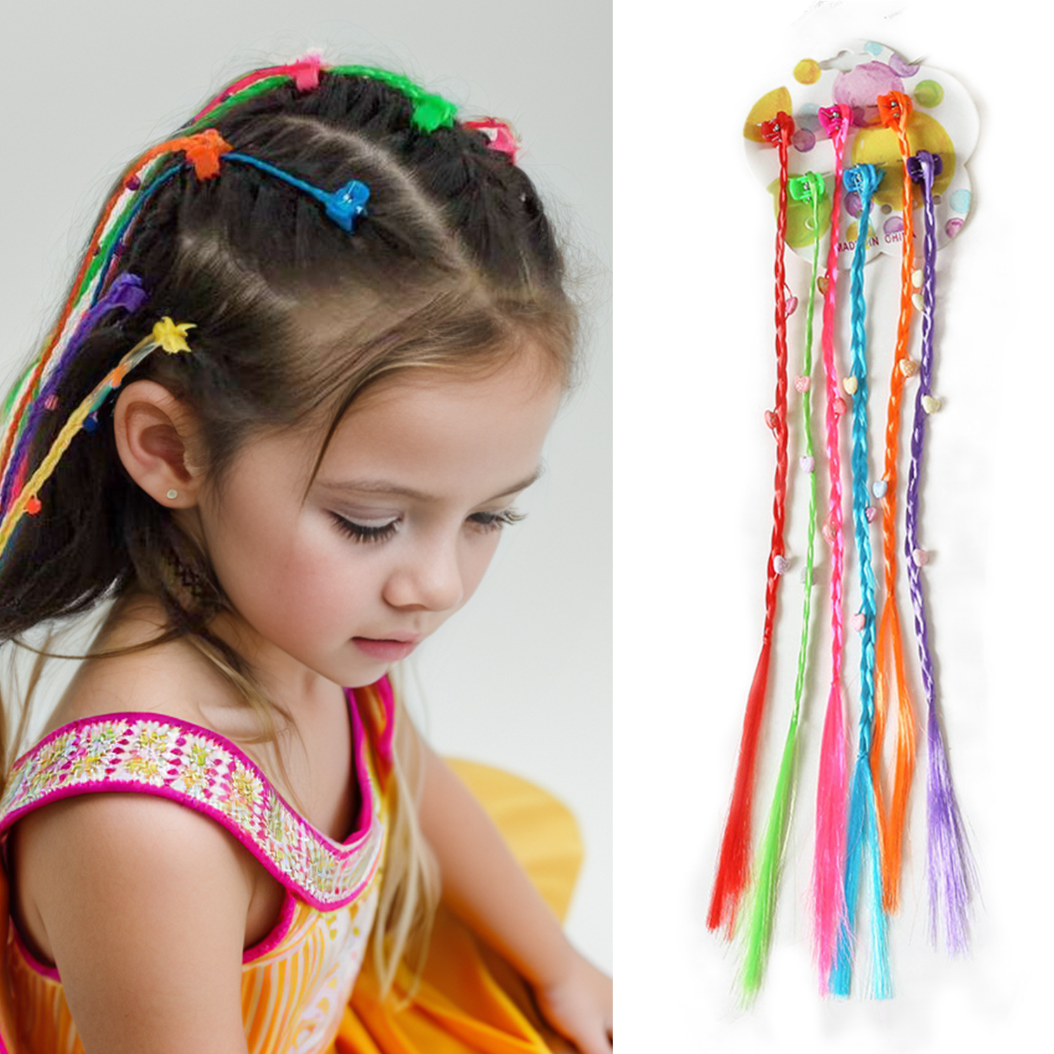 子供のお下げかつらカラーステージショーかつらクリップカラービーズお下げかつらかつら