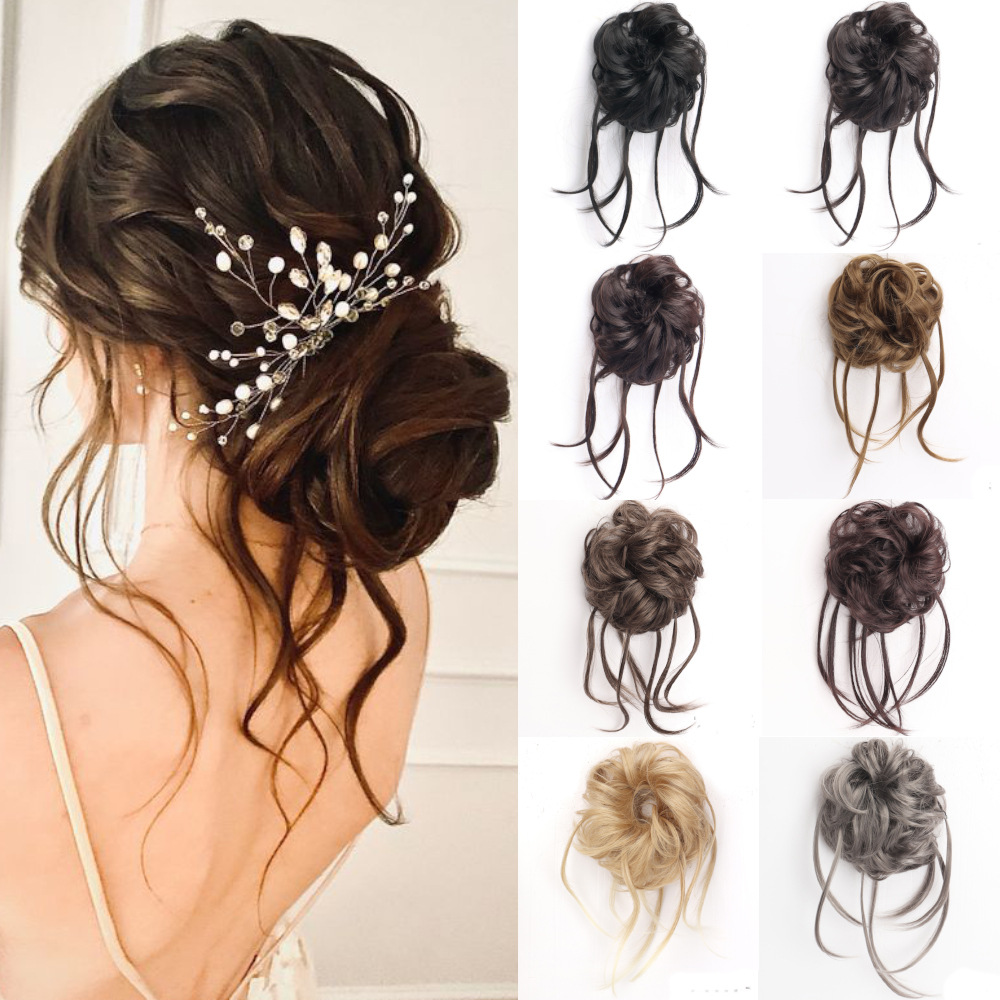 許昌のかつらの本当の髪の団子の頭のかつらは巻き髪を包みます。