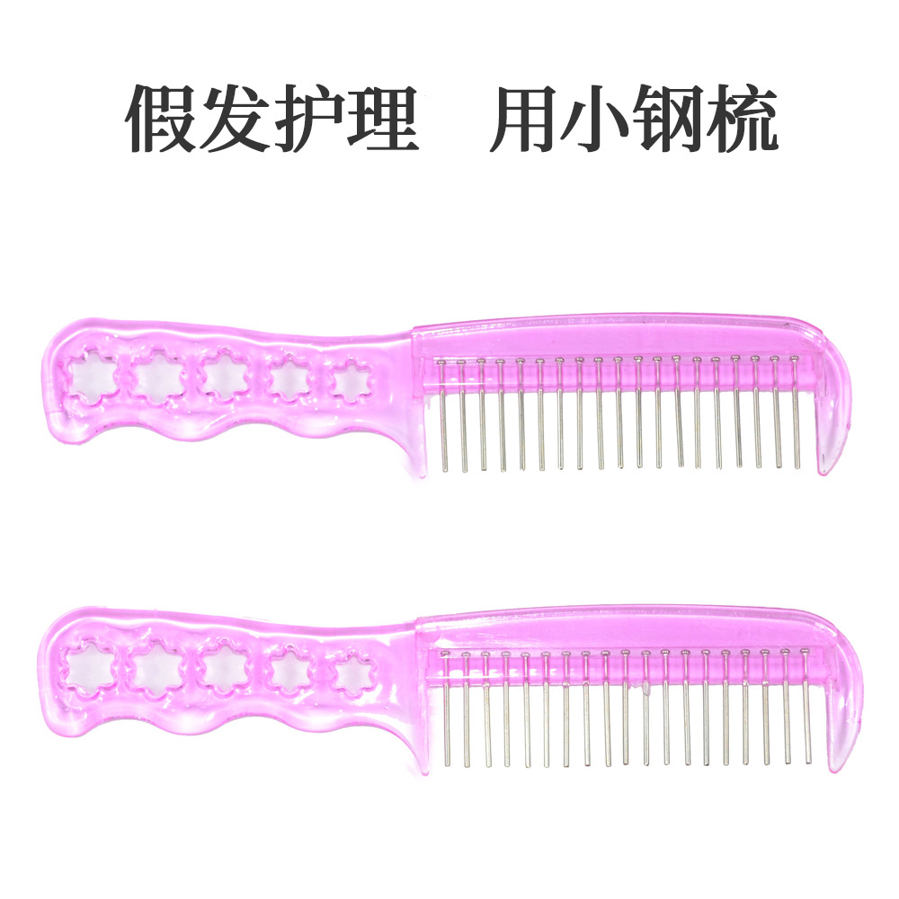 ウィッグアクセサリー ウィッグケア用小型スチールコーム ピンクプラスチックスチール定規コーム ウィッグケア用品 ストレートヘア