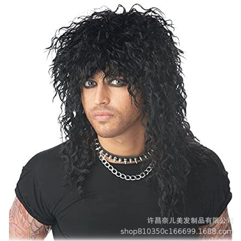 乞食かつら仮装爆発ヘアかつら男性黒ロングストレートヘア野蛮人ヘッドギアステージパフォーマンスクレイジーウィッグ