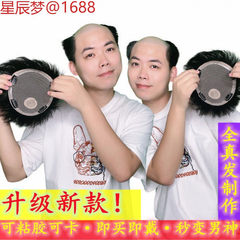 男性用ウィッグ、ショートヘア、本物の髪、中高年、フラットヘッドウィッグセット、本物の髪、ハンサムでリアルな男性用フルヘッドセット