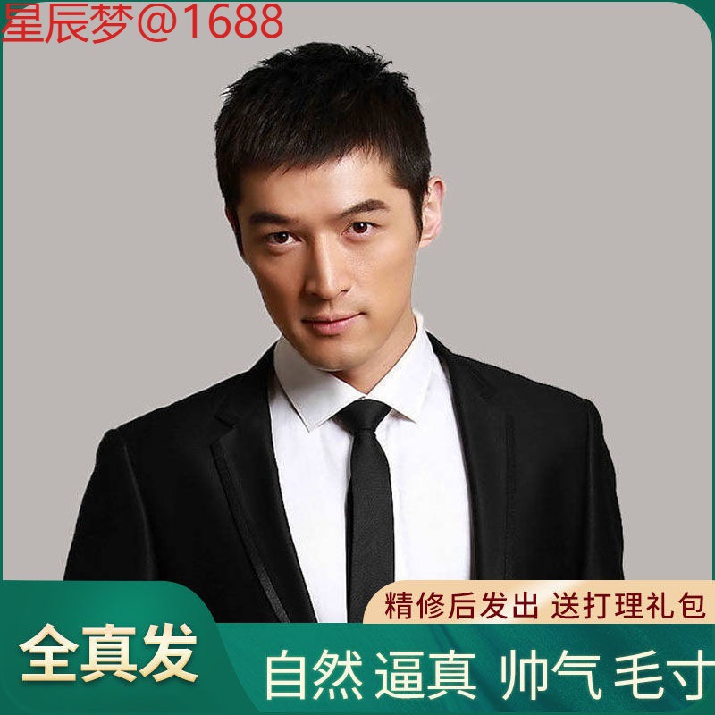 ショートヘアの男性用ウィッグ、万能カット前髪、フルリアルヘア、韓国風ハンサムメンズ微分ナチュラルフルヘッドギア