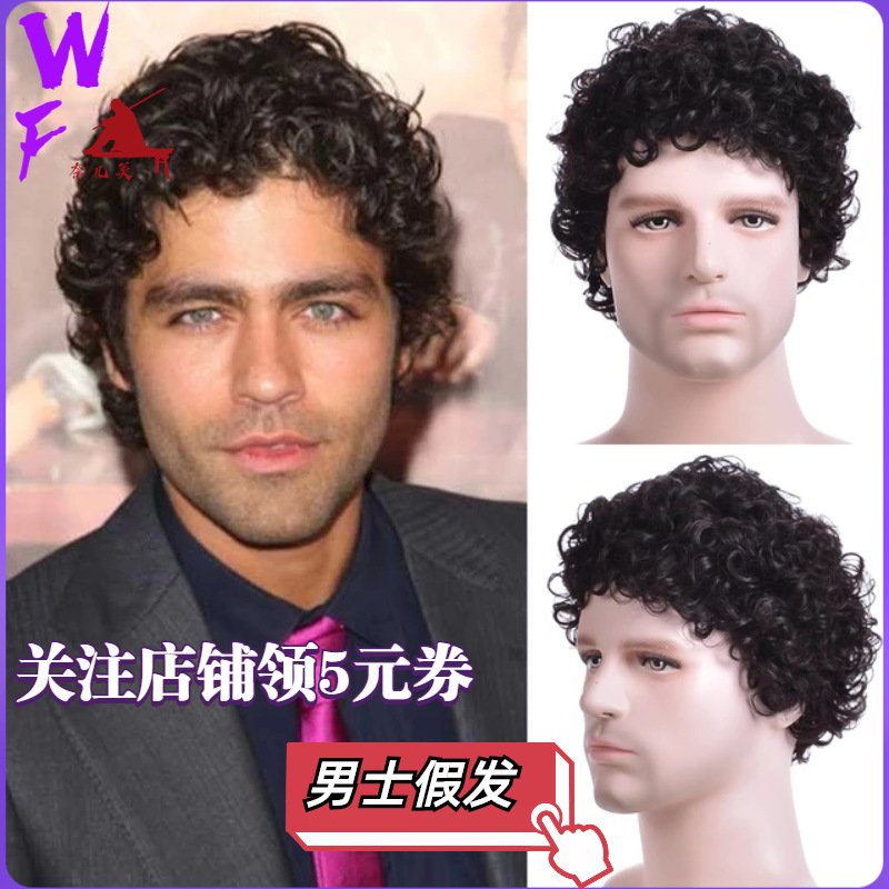 カツラ男欧米カツラ全头カバー黒ショートカールふんわりかつらアフリカ伪afro men wigs