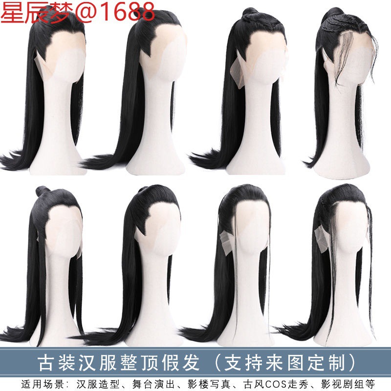 古代中国の漢服スタイルの男性用フルウィッグ、古代スタイルの映画やテレビのパフォーマンス、通気性のある写真、高温シルクのロングストレートヘア