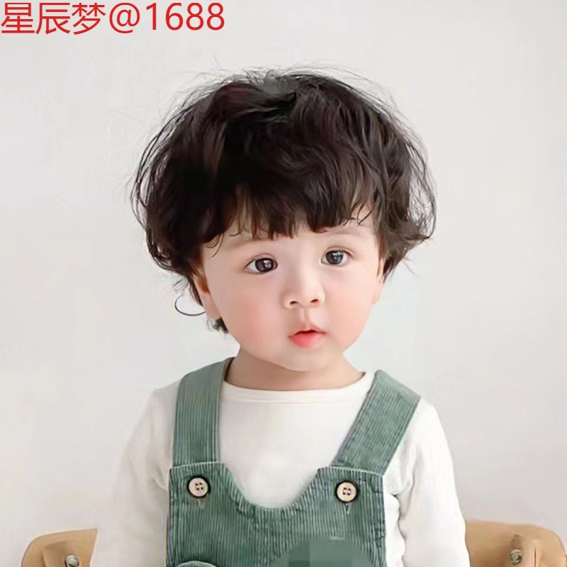 子供用フェイクヘアボーイショートヘアナチュラルマイクロカーリーヘアベビーポットカバー写真かわいい赤ちゃん男の子ヘアファパフォーマンスフルヘッドギア