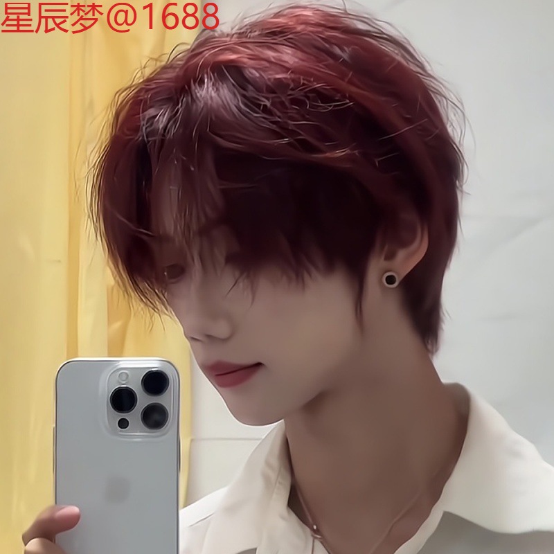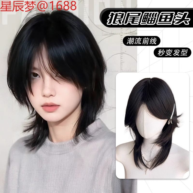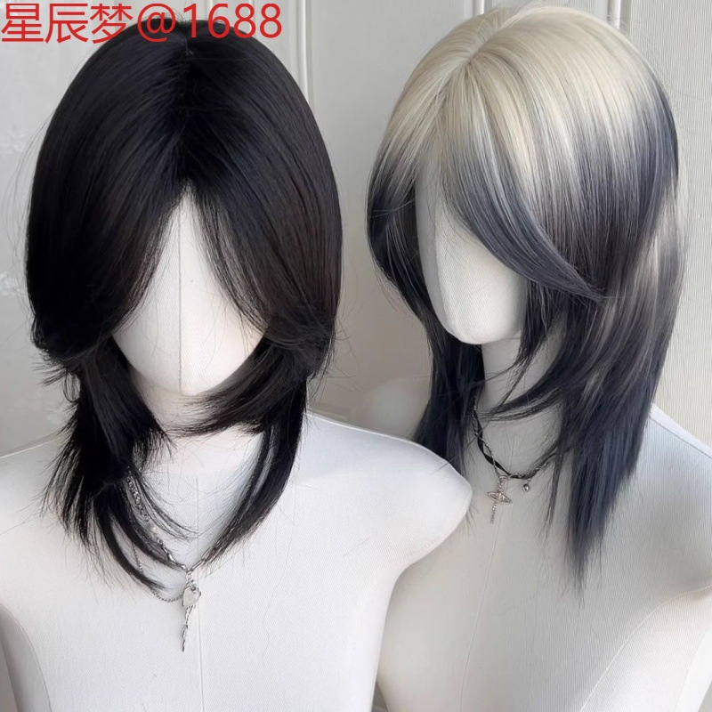 ウナギヘッドウィッグメンズ韓国風ハンサムショートヘアウルフテールファッションふわふわナチュラルユニセックスショートストレートヘアウィッグセット