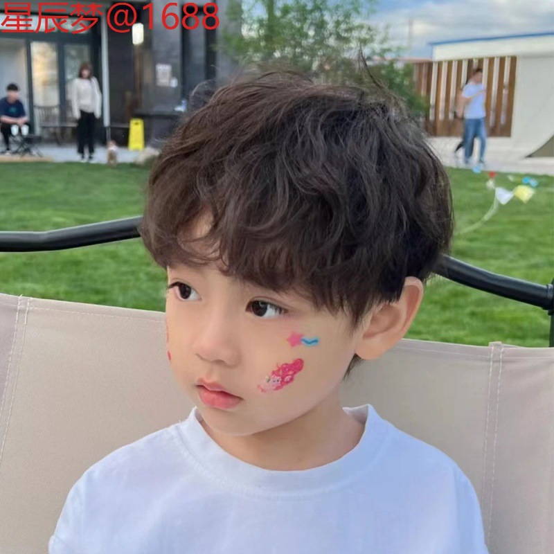男の子用子供用ウィッグ、ショートカーリーヘア、マイクロカーリーヘア、0~13歳、ショートヘア、ハンサムカーリーヘア、通気性のあるフルヘアセット