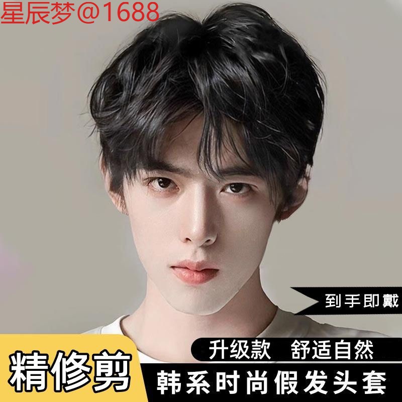 万能メンズショートヘア韓国風ハンサムデイリー全頭カバーふわふわカットカバーニュートラルスタイルボーイッシュショートヘア超軽量