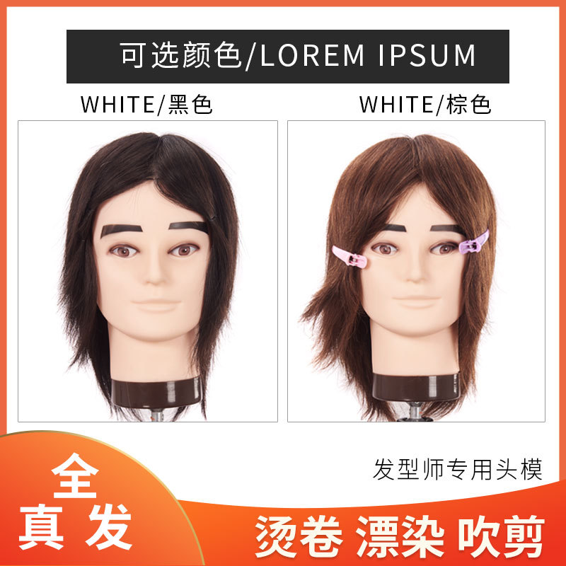 100% 全真髪男性美髪頭模床屋見習い練習精剪棒巻きパーマ染ダミー頭公子頭