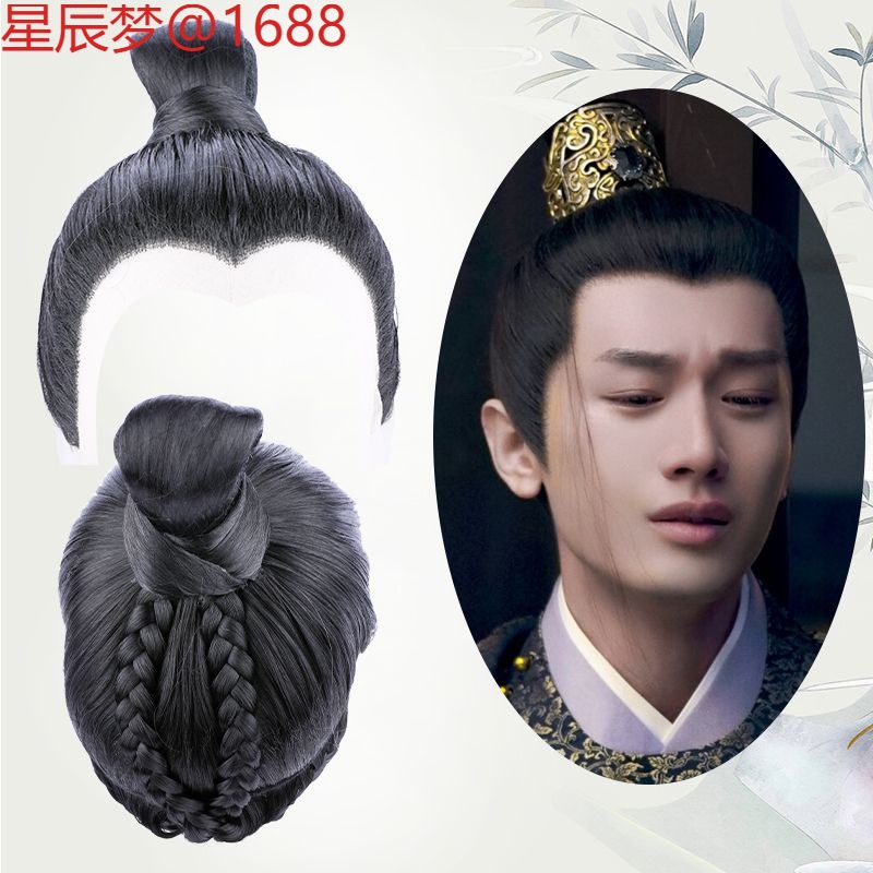 ウルフテールの新しいスタイルの男性のロングヘア、日本の男の子のボラヘッド、半分結ばれた新しい中国風のサムライヘッド、ショートヘア、インターネットセレブのフルヘッドギアスタイル