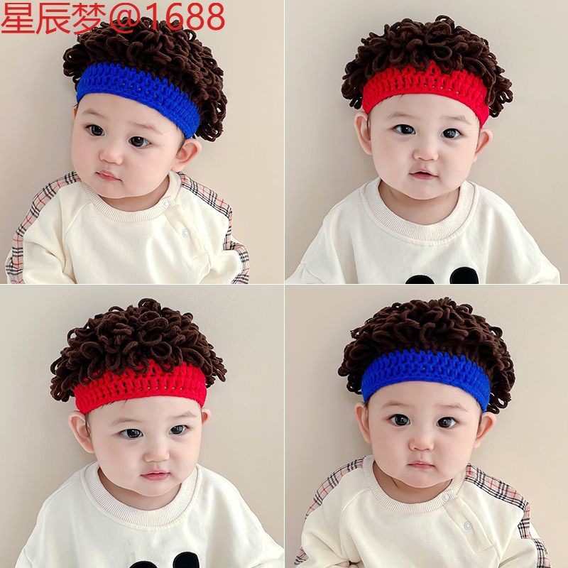 ベビー帽子秋と冬の男の子ベビーウィッグ帽子巻き毛男の子子供の爆発ヘアボーイかわいい面白い春と秋