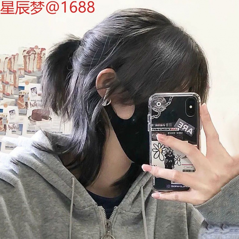サムライヘッド偽ヘッドギア男性用ショートヘア日本製ハンサムウルフテールユニセックスニュートラルボラヘッドナチュラルパーソナライズヘッドギア