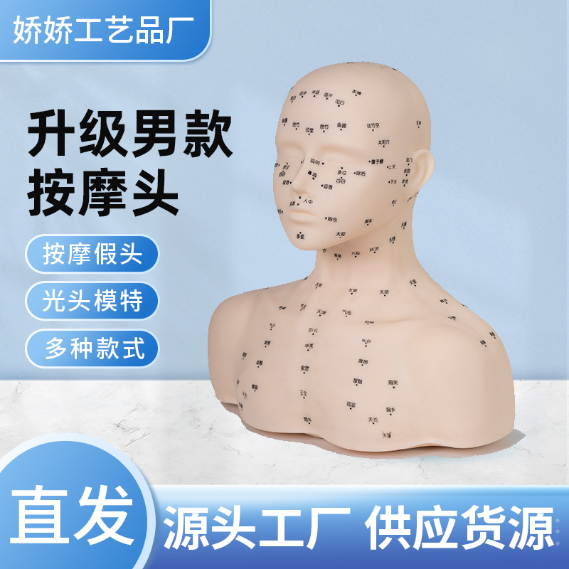 アップグレード男性用マッサージヘッドモデル肩付き美容ダミーヘッドモデルマッサージ光ヘッドバンドツボ鍼灸モデルヘッド