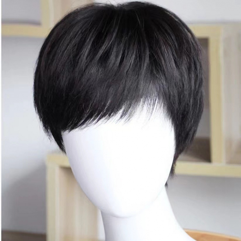 男性用ウィッグ、短いふわふわ前髪、短いストレートヘア、ハンサムでリアルな個性、男女学生、韓国風カジュアル黒髪セット
