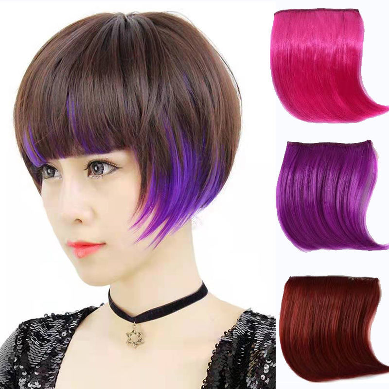 女性用の新しいカラフルなグラデーションエア前髪ショートヘアウィッグ、斜め前髪、男性用のリアルな目に見えないシームレスなハイライトウィッグ