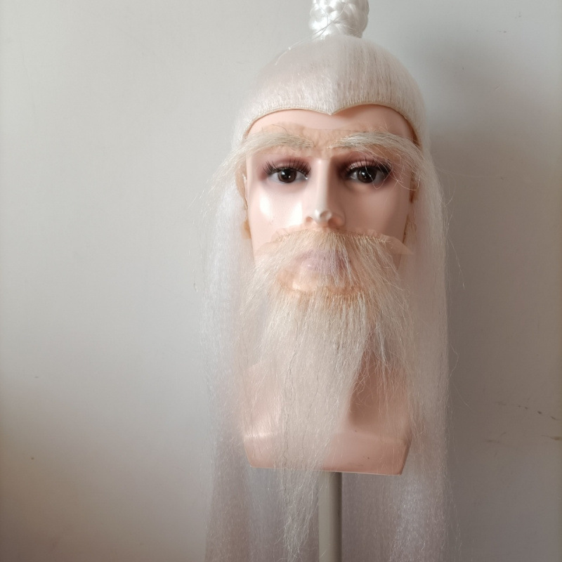 映画やテレビの舞台撮影小道具、太白金星ヘッドギア、男性のひげ、老生おじいちゃんのヘッドギア、ひげ、黒と白の花、白い接着剤