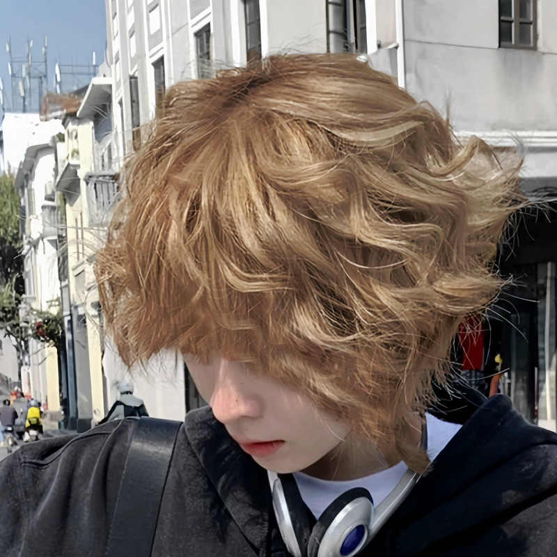 偽毛の男性のショートヘア、ファッショナブルな気質、香港スタイルのレトロなウールカーリーショートカーリーヘア、自然でリアルなアルミホイルパーマの男性のヘアスタイル