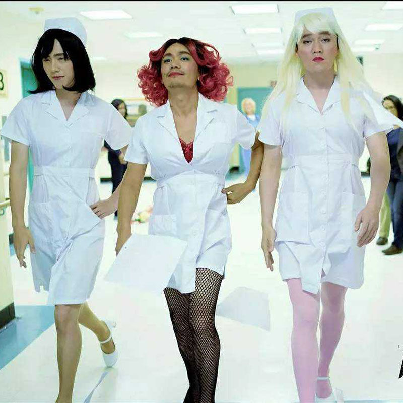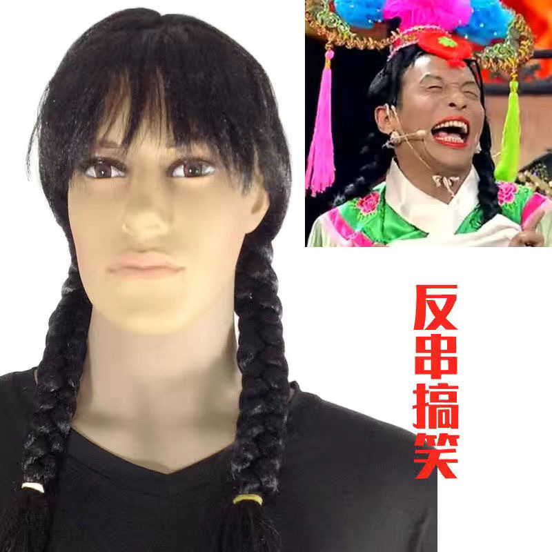 舞台お笑いショー反串かつら男が女装して震えている速手生中継道具ネット赤頭カバーcosかつら