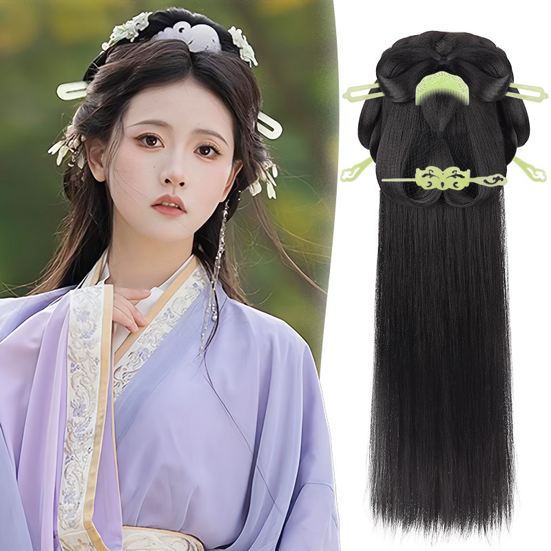 古着漢服頭飾りかつら古風戦国衿かつら一体式魏晋風盤髪髪後頭部秦之