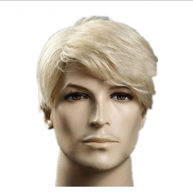 ショートヘアのかつらは男性式の本物の髪をしています。