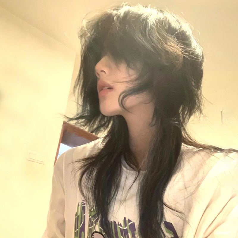 クラゲの頭の黒い尾の偽の髪の毛の男性の復古的な個性の微巻きの髪の雰囲気感は写真を撮って二次元の全体の頂を整えます。