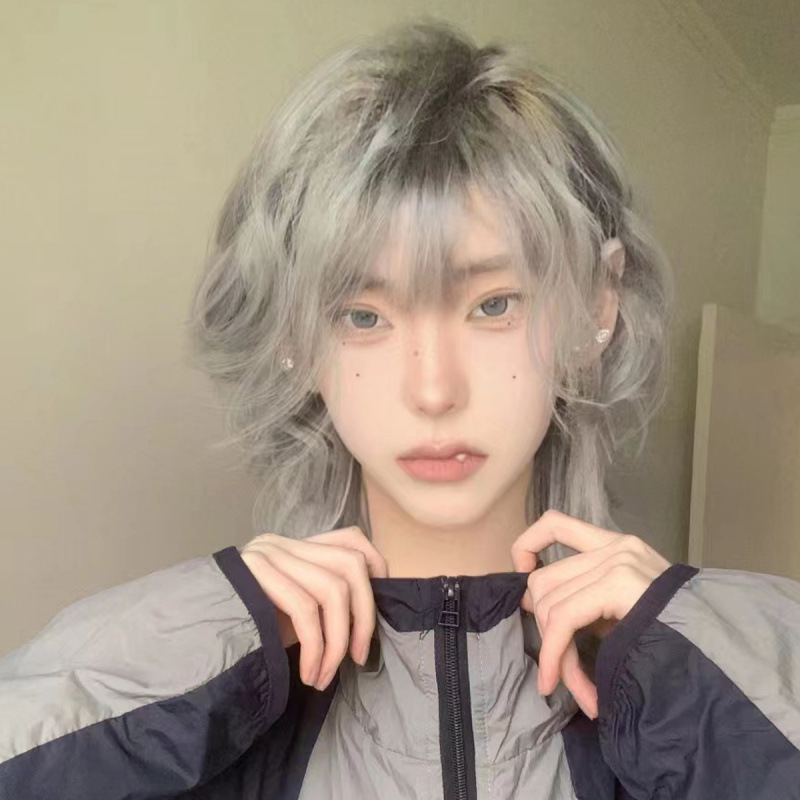 銀白色二次元狼尾五条悟cosかつら服少年の頭がふわふわしています。