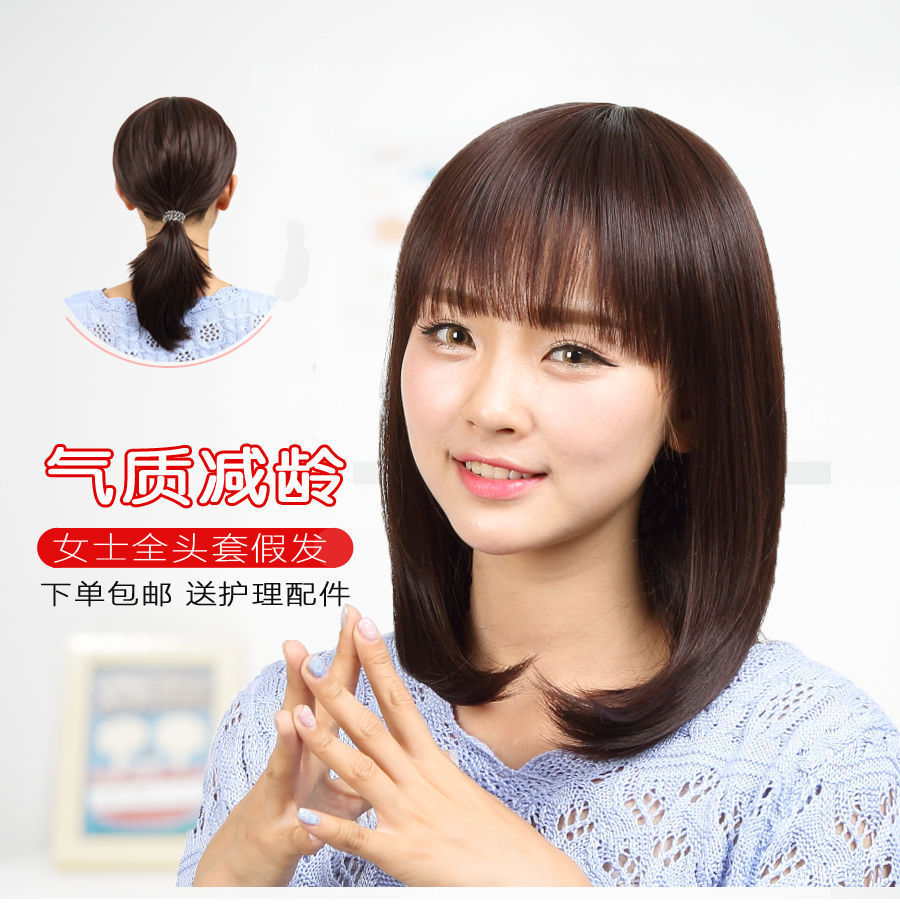 全体のかつらの女性の長い髪の長い髪の長いストレートな髪の自然なリアルな女性の中の長い髪の全体のかつらのセットの前髪