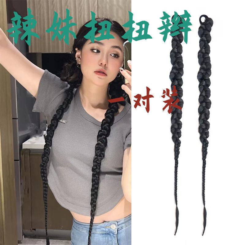 欧米風のお下げのポニーテールの長い麻のお下げの千年のギャルはお下げを捻って撮影してボクシングのお下げの汚いお下げのかつらの女性を演出します。