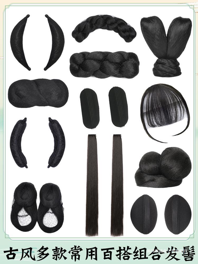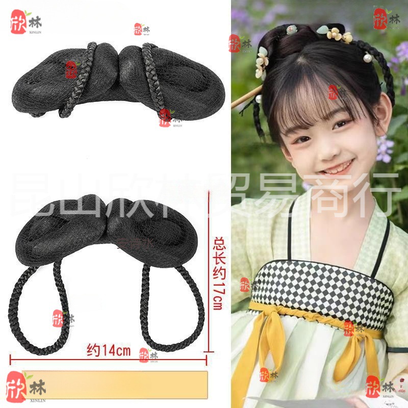 汉服假发包古风儿童两侧垫发薄款扁牛角古装全发丝秃子乐软牛欧清