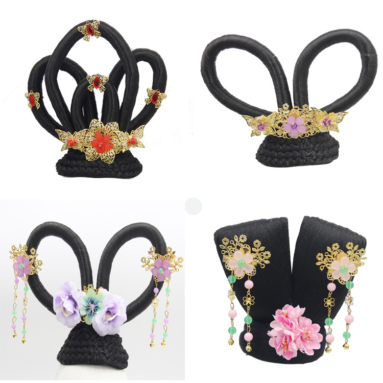 古風武媚娘の髪飾りは飛天のかつらで子供の嫦娥の新型の唐の時代の髪を飾っています。