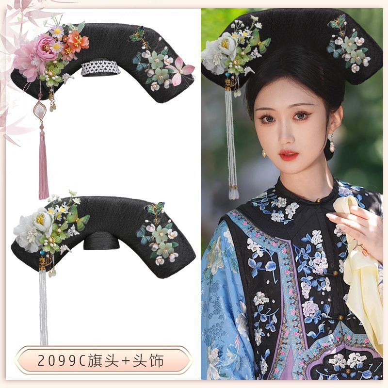 時代のかつら宮廷清朝の旗の頭は漢服の貴妃の旗の頭を撮影します。