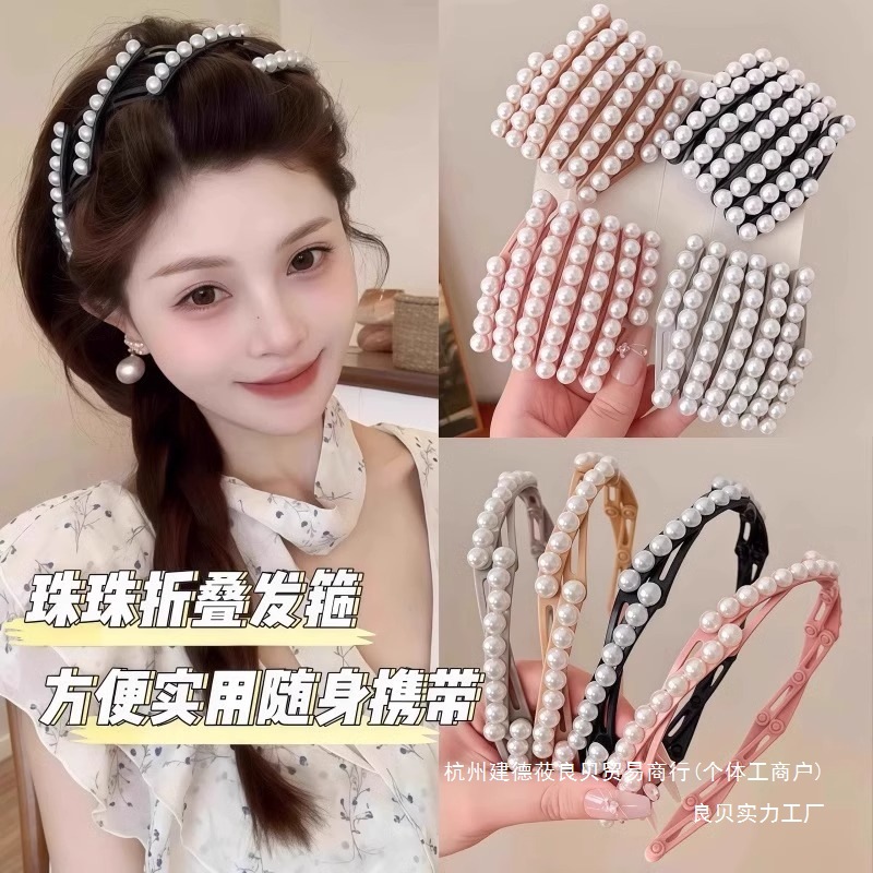 女の子用ビーズ折りたたみヘッドバンド 2025 新しい洗顔ヘッドバンド前髪額の切れ毛固定ヘッドバンド夏の帽子