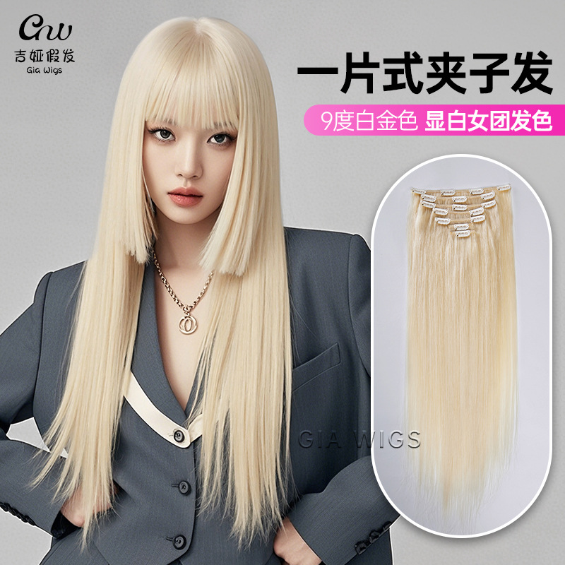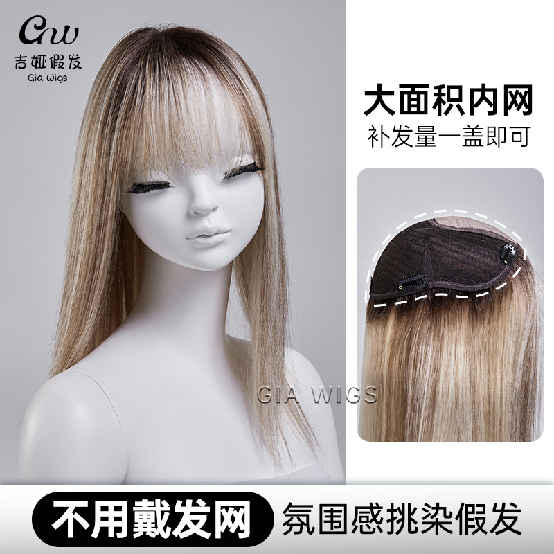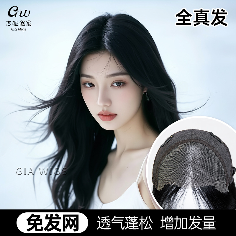 髪なしネットかつらの中で自然な黒ストレート大面積のかつらがプリンの頭を隠して増発します。