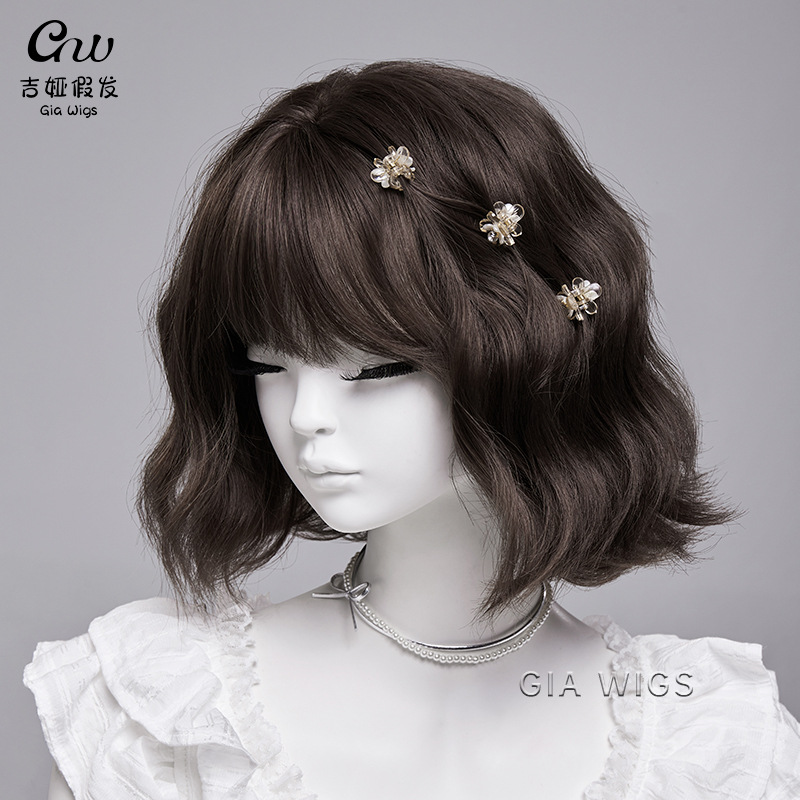 フランスのウール巻きの短いかつらの学生の卵巻きの前髪の怠惰な雰囲気感の短髪の日本のかつらはトップを整えます。