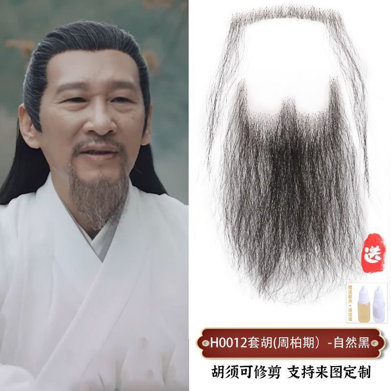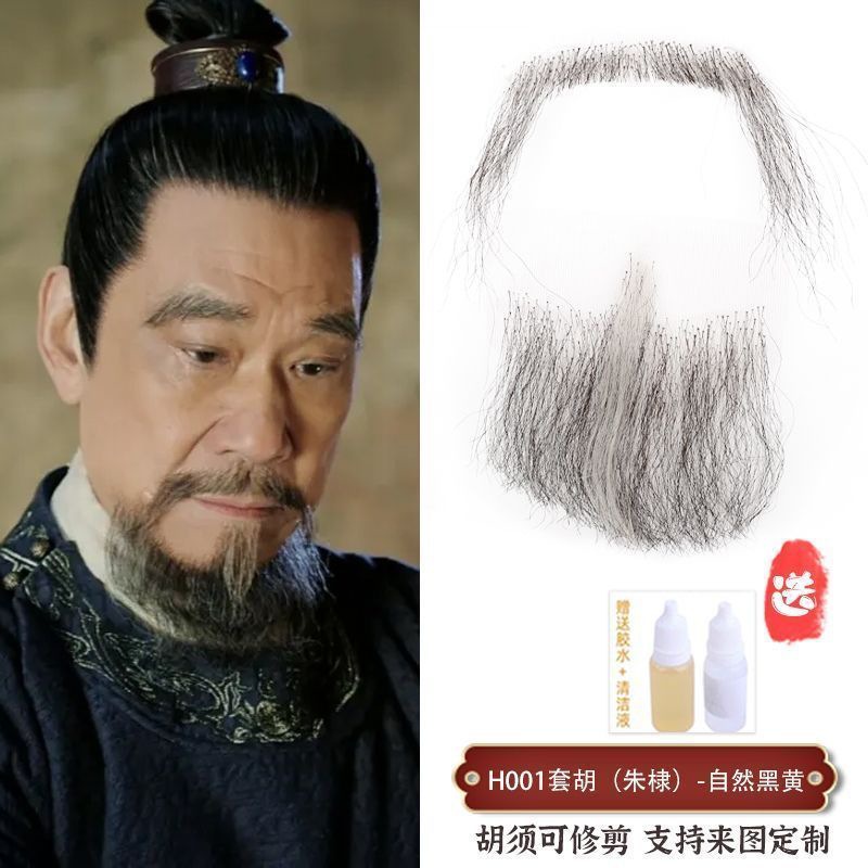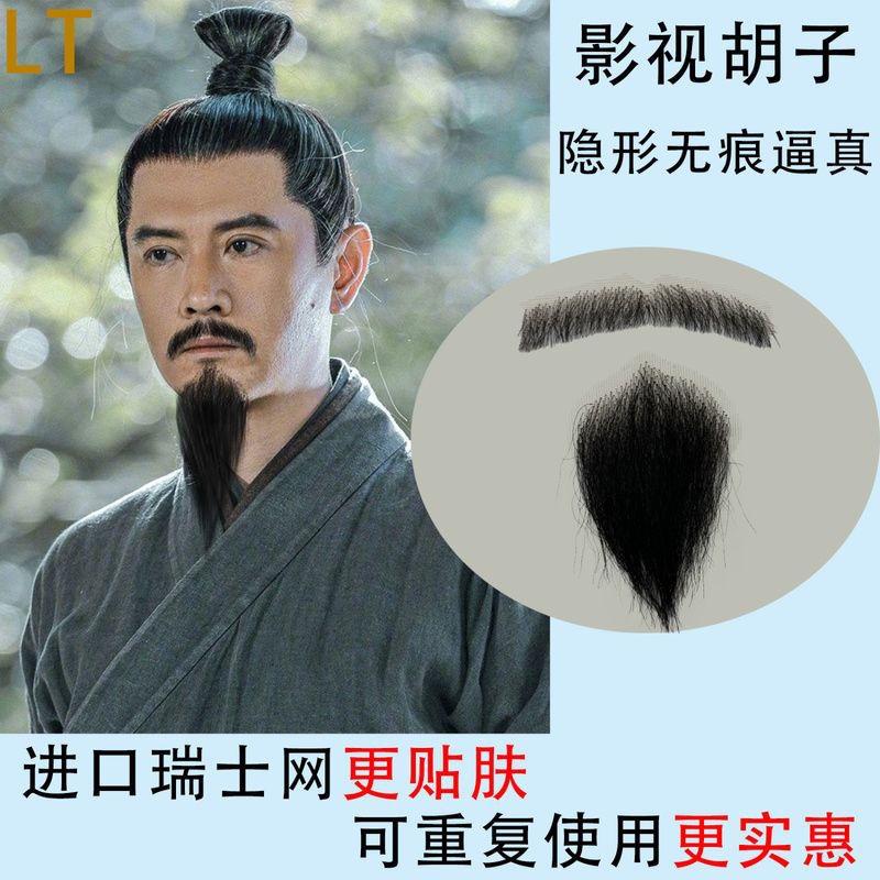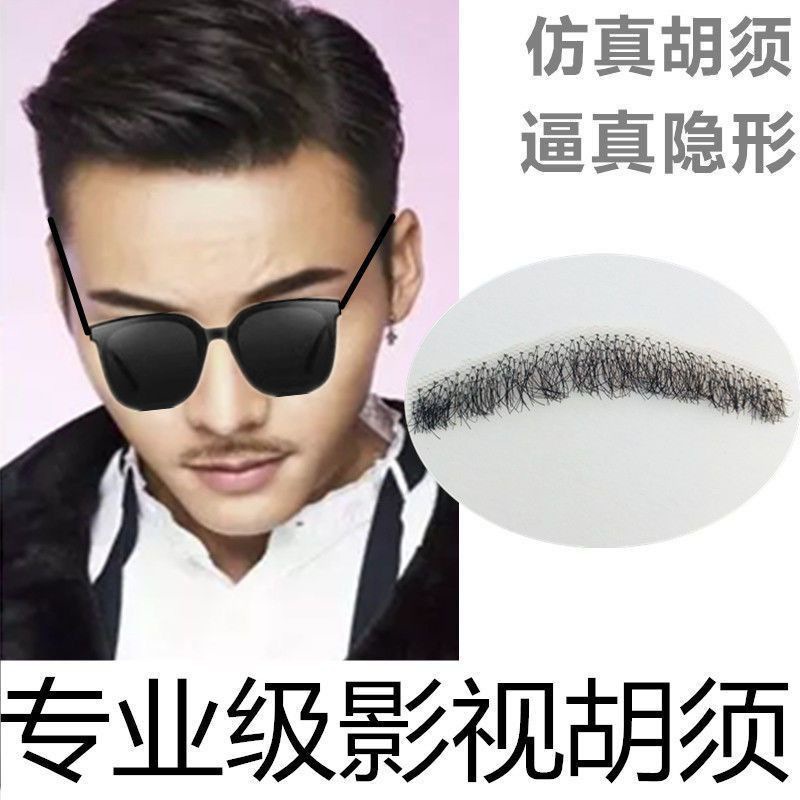 偽のひげの男は偽のひげのひげの道具をシミュレーションして貼り付けて男の偽のひげの演技を撮影します。