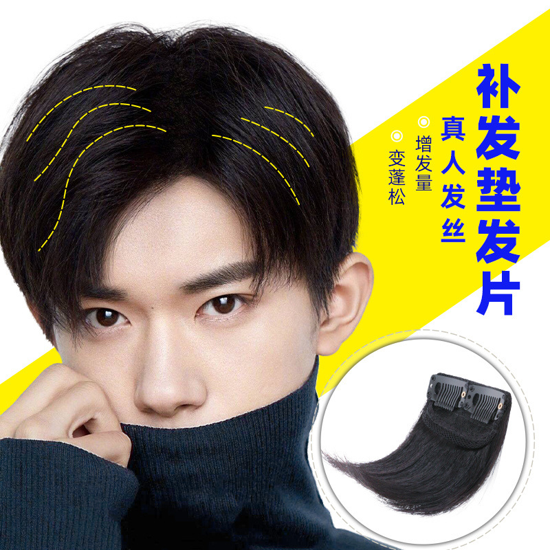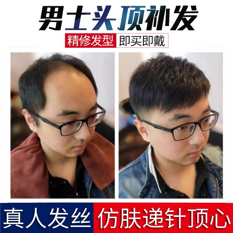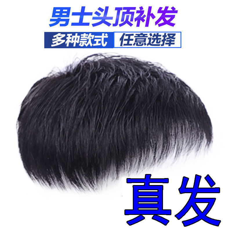 ヘッドスピンウィッグ、本物の髪、男性と女性の増毛ウィッグ、ふわふわ男性用ウィッグ、頭頂部の交換用ウィッグ、シームレスなショートヘア