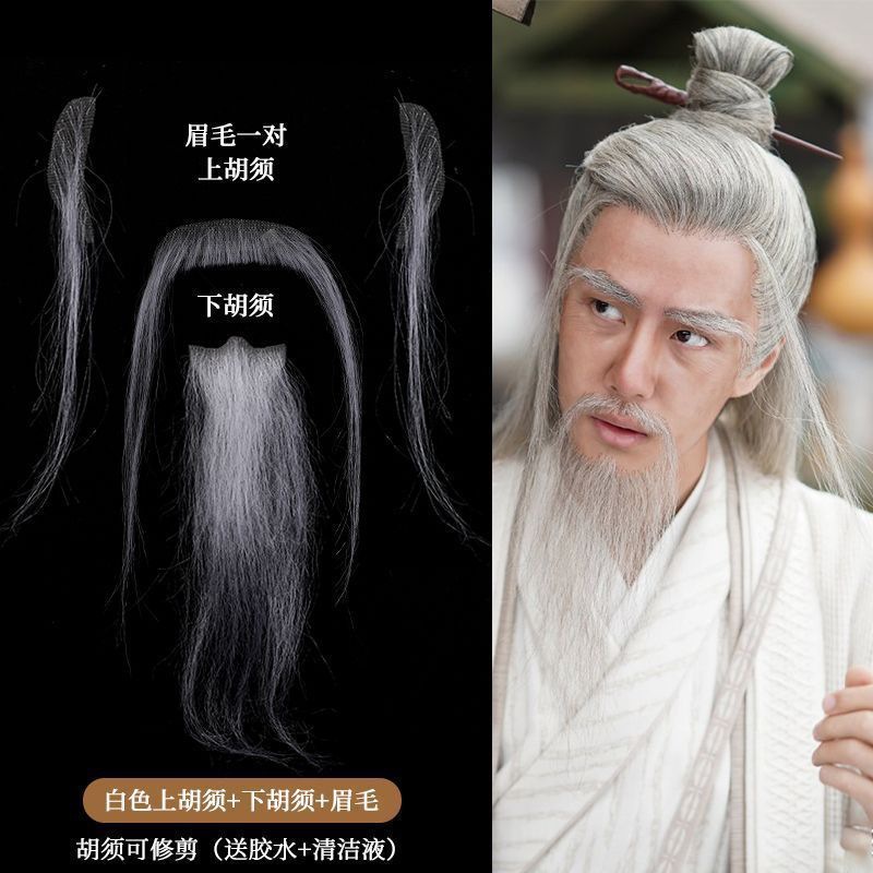 時代劇の形の化粧道具の男性のひげはひげの中で老年の花の白いひげをシミュレーションします。