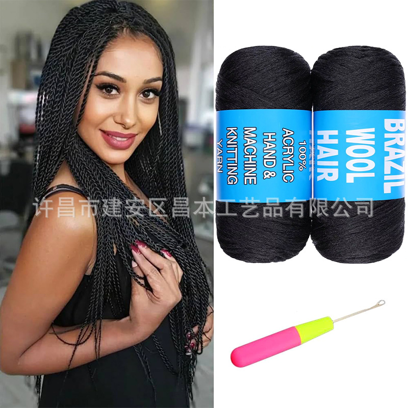 アフリカのかつら毛糸編み髪ポリプロピレン糸かつら編みお下げ毛糸黒人お下げbrazil wool hair