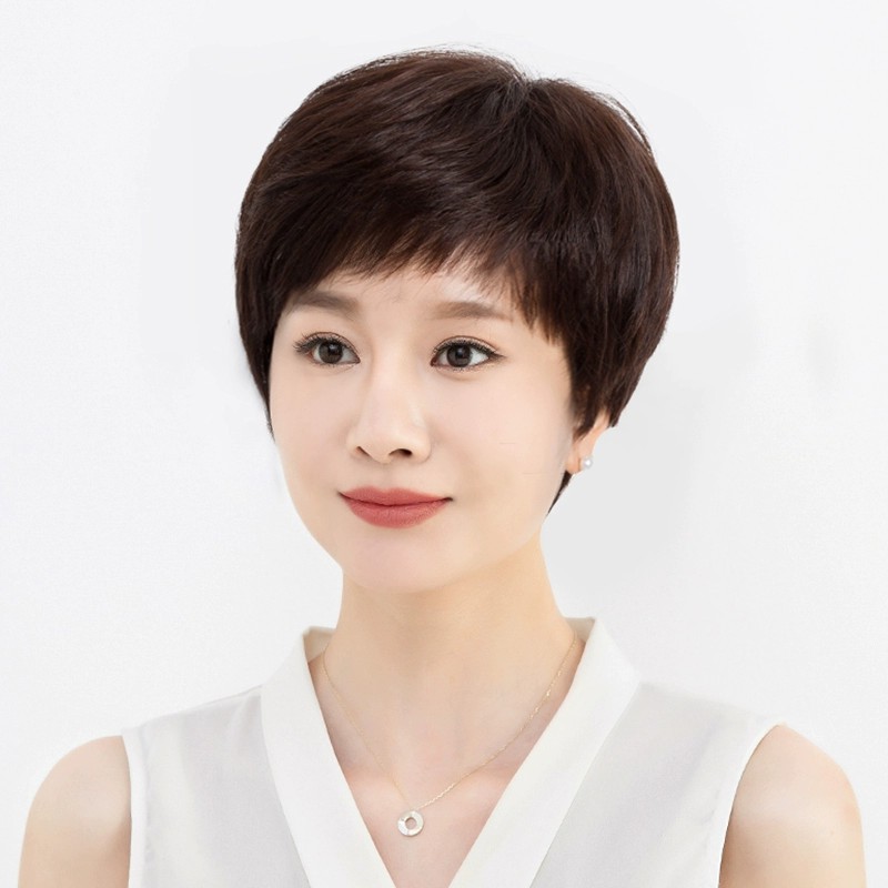 ショートヘアのカバーの中で高齢者の女性のかつらは全体の頭のカバーのファッション的な気質のお母さんのストレート髪の薄い通気性の全体のかつらです。