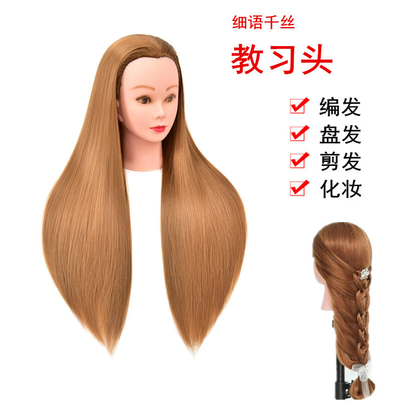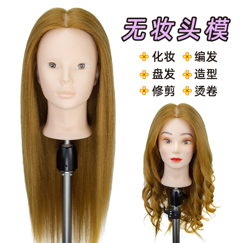 かつらの頭の型の練習は髪を編んで化粧のモデルを出します。