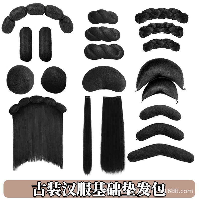 漢服かつら麻花牛角マット髪包全髪糸基礎打底手残党ソフト髪包古風日常髪