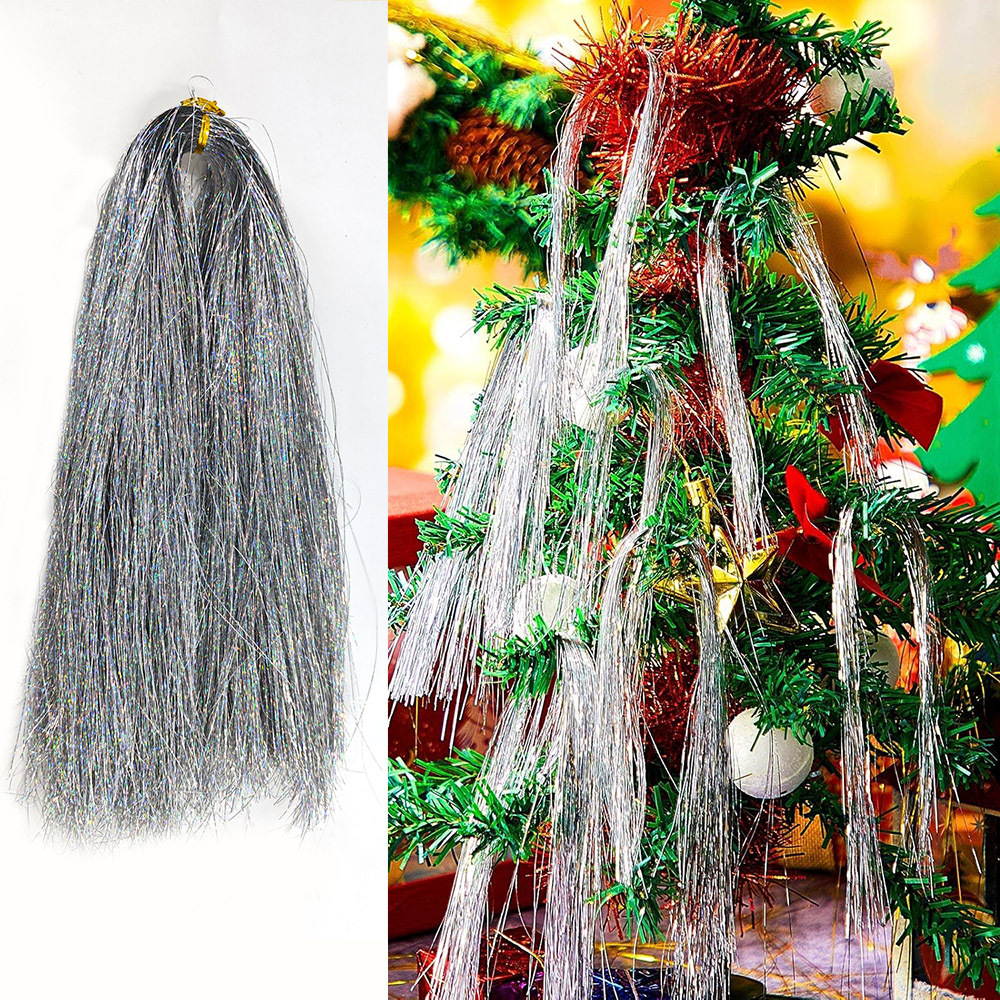 クリスマスツリーの装飾のペンダントの銀色の金糸の条のクリスマスは雨の糸のレーザーの糸を飾ってアクセサリーのアマゾンを飾ります。