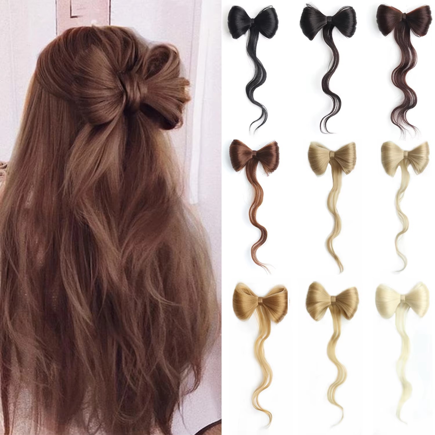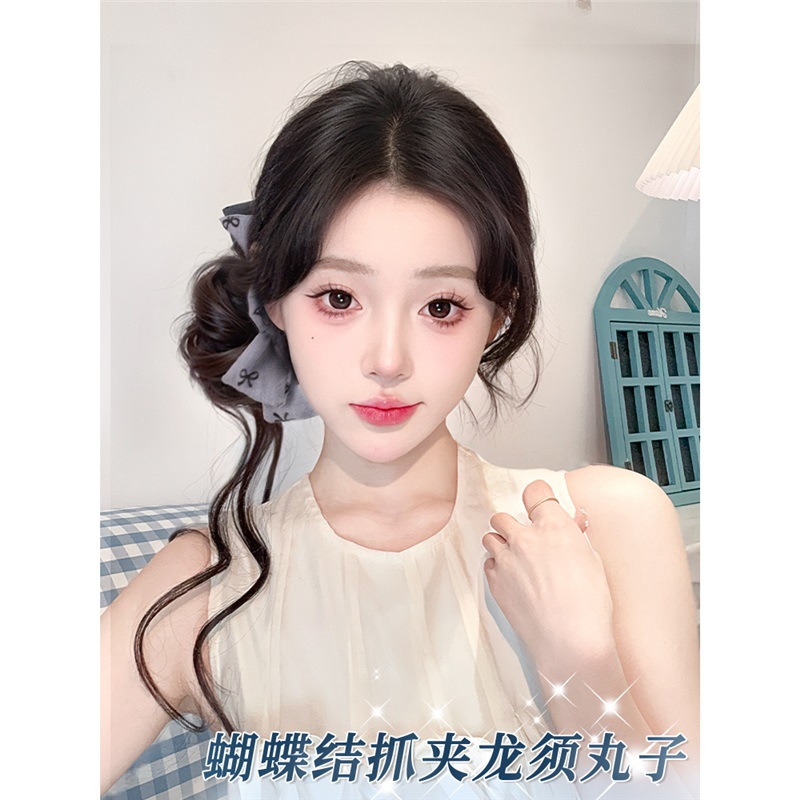 蝶結びハーフタイカーリーヘアカモノハシクリップ気質蝶結びウィッグ女性タッセル古代スタイルヘアアクセサリー