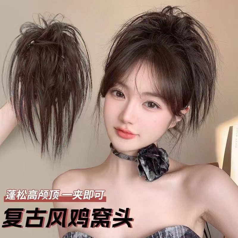 鶏の巣の頭のかつらは金のギャルをつかんで乱れてふわふわしている団子の頭の大きいサイズの髪はクラゲの頭を挟みます。