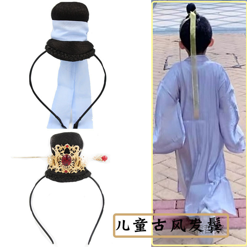 時代劇の男性の偽の頭のカバーの古代の息子の坊ちゃんのかつらの子供のショーの頭の飾りは馬尾の舞台の半分のカバーを挟みます。