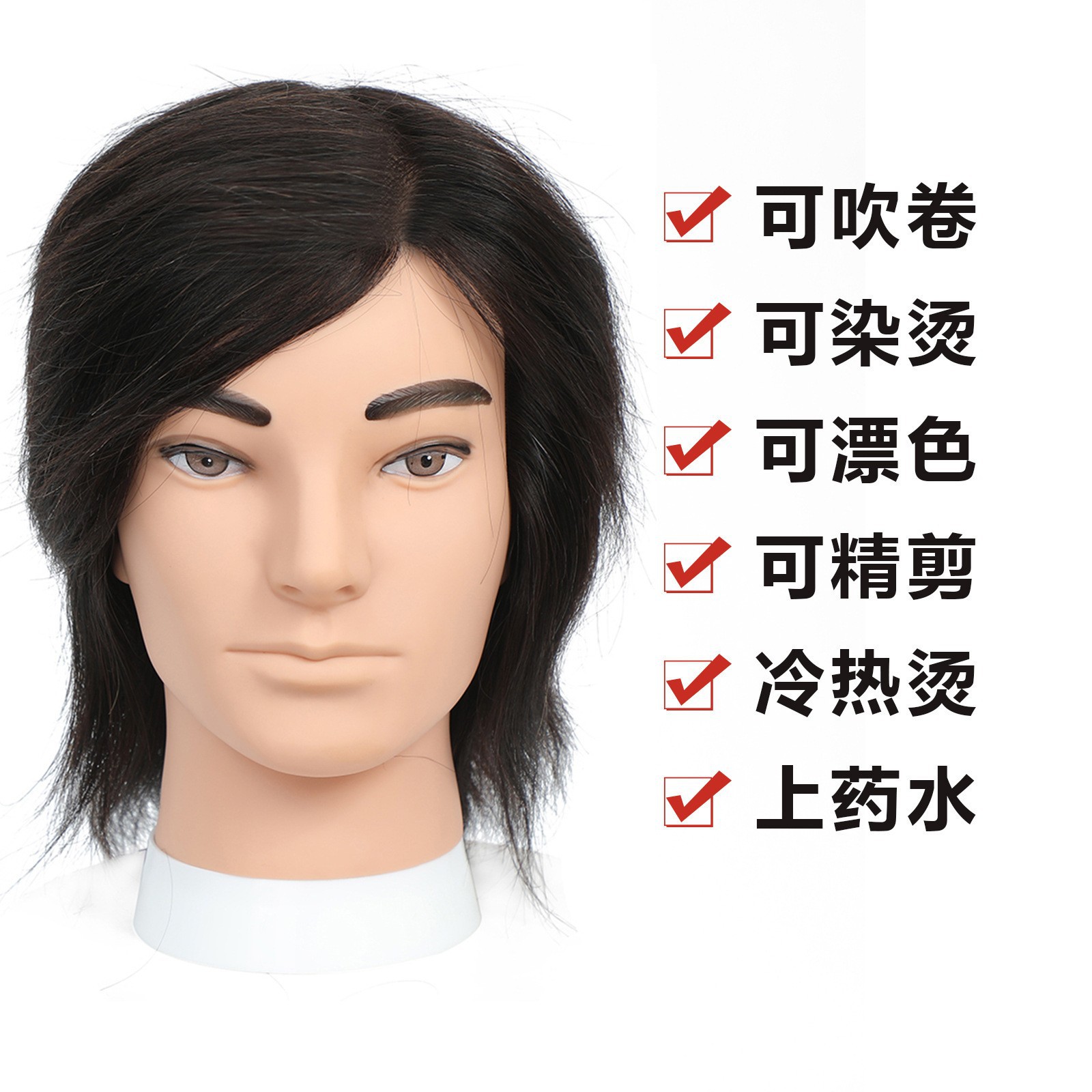 純人毛男性ヘッドモデル理髪男性モデルヘッドはパーマや染色が可能で、理髪店の見習いがヘアカットの練習用の偽人形ヘッドを実行できます。