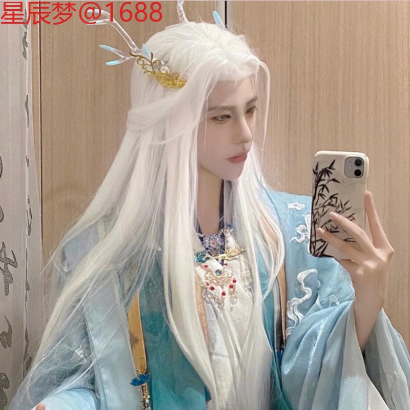コードネーム鳶左慈cosかつら真髪男長髪かつら古風銀白乙游万毛全頭薄金